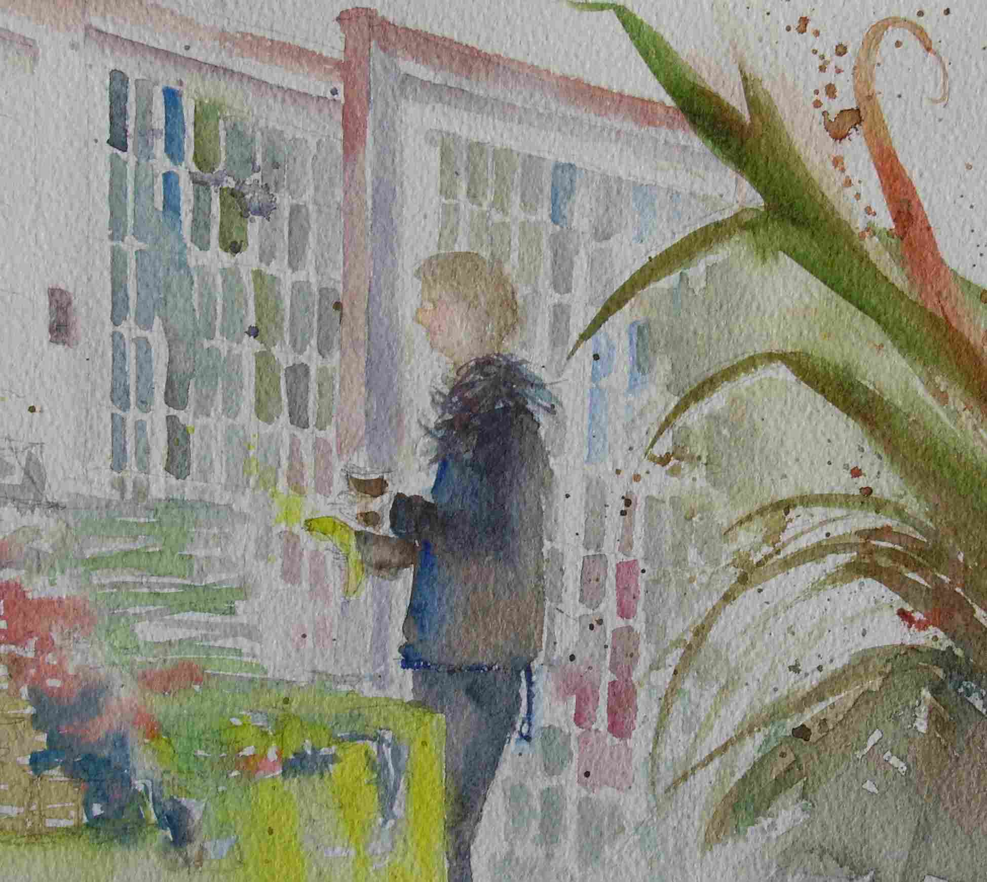 Here is my art colleague Pat, displaying a huge range of paintings, cards and unique handmade bags…..and holding a splendid banana !