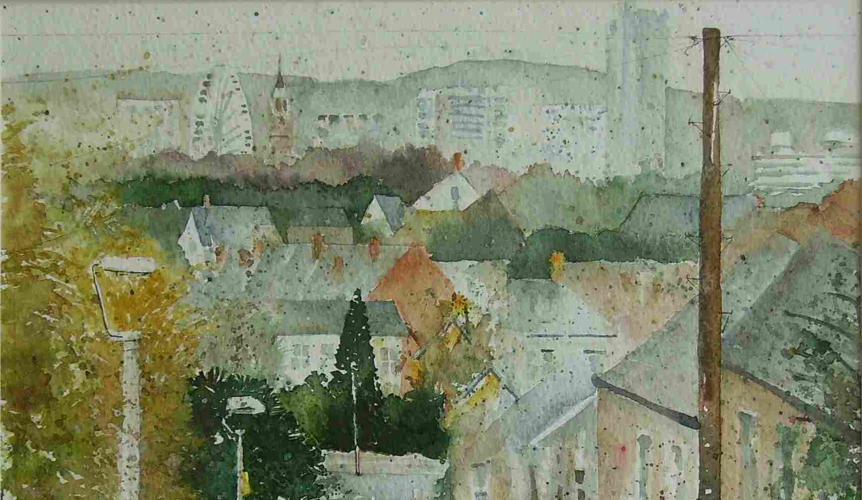 ….and Sheffield Wheel (just before it disappeared) in the distance. This is the upper part of the 8 February post (Oakhill Road). The complete painting is square.