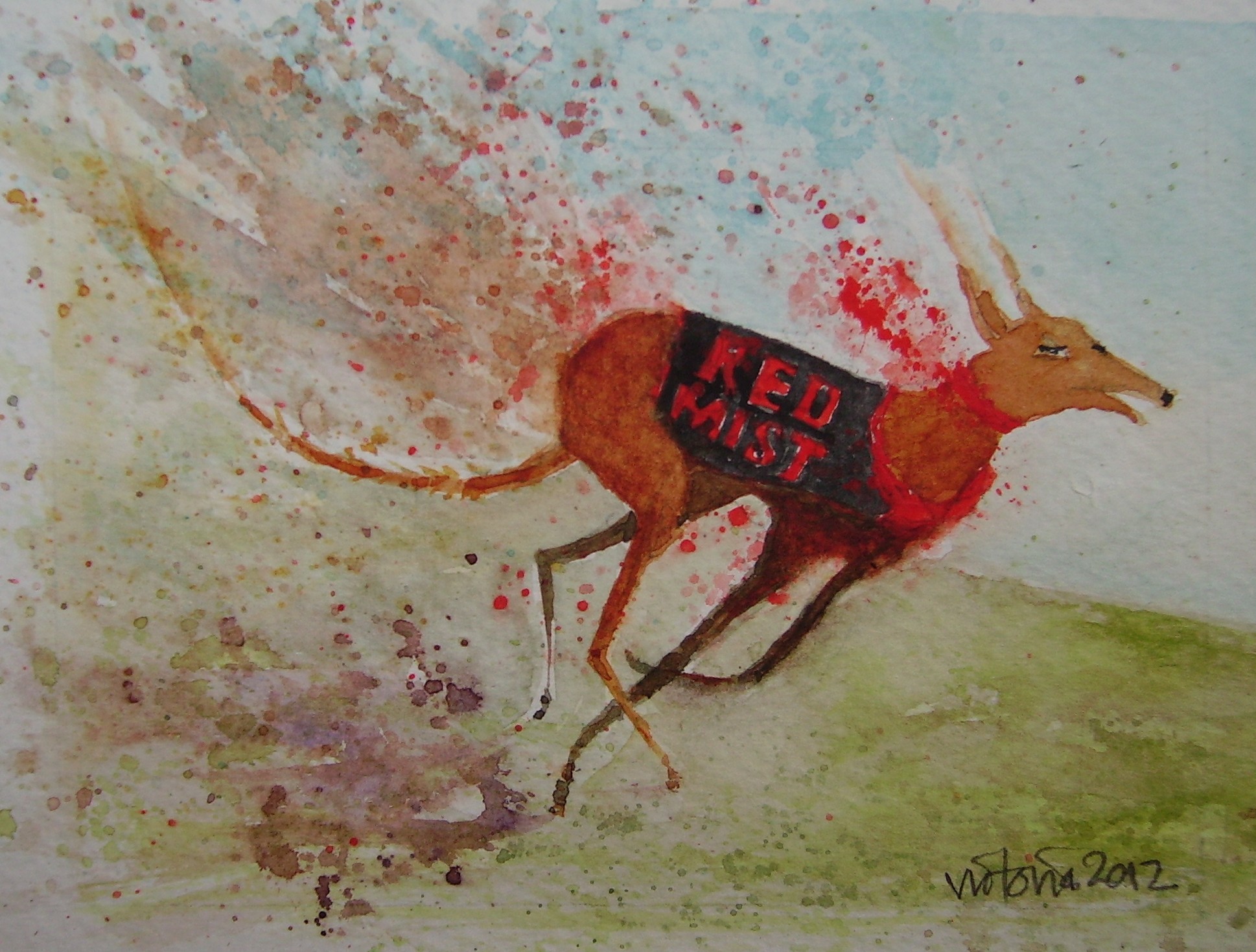 …………the more people help Retired Greyhounds, the better ! and I dedicate my “Red Mist” Greyhound watercolour to Patricia 🙂