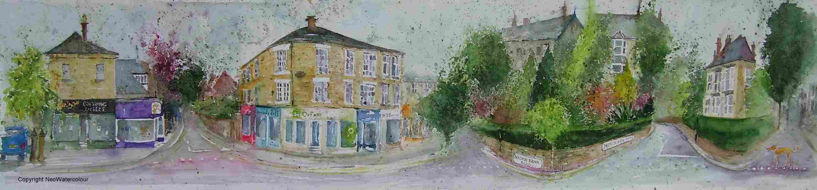 is the final size of the epic, “Nether Edge 360″ (framed 36″ x 13”). My favourite part is “Sandy” the Greyhound, bottom right corner.