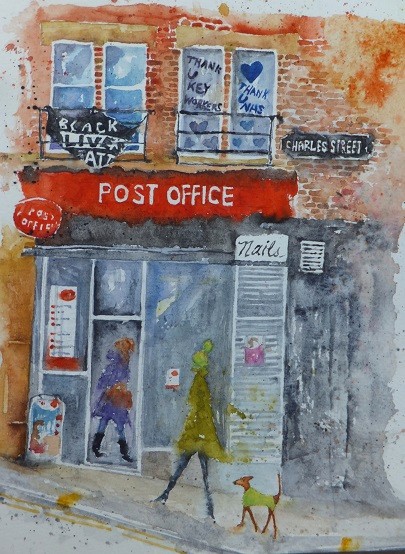 … a cute pooch in hi-viz coat, and window motto’s “ThankU Key Workers”, “ThankU NHS”, also a tangled “Black Lives Matter” banner….