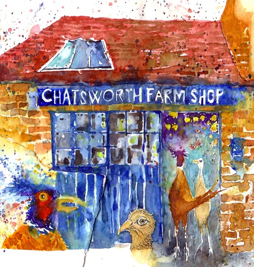 … on a recent visit to the Farm Shop, at Chatsworth, Derbyshire, saw a field of Pheasants and was inspired to create this watercolour…..a bit rough round the edges, but different !