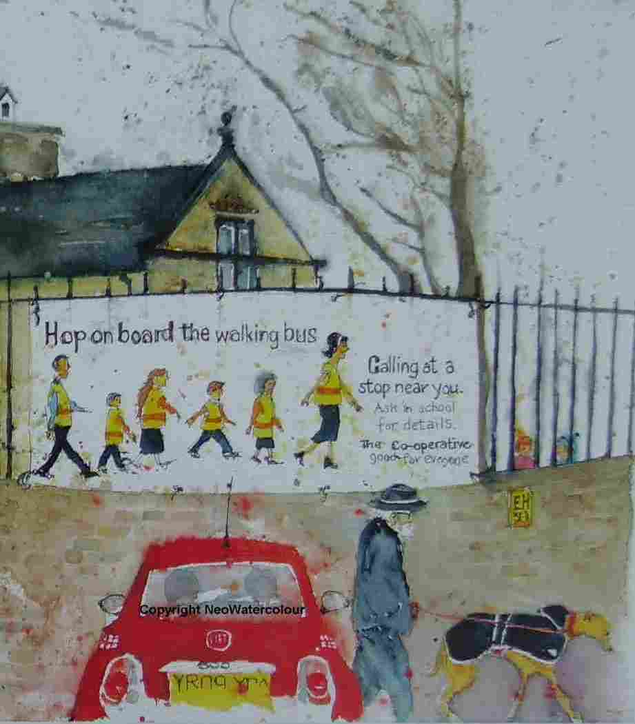 ……….to my little red Fiat 500, who now has a new owner, I have to (reluctantly !) change my “Fiat Mephistopheles” Blog Header, to my “Weston Park 360° (Big Ron, Holly, & Mabel to the Rescue !)” watercolour, which is to to be auctioned by the British Red Cross in June.